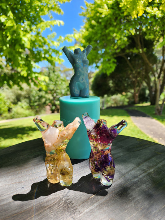 Goddess Figure Silicone Mould in an Arms Up Pose called “Rubi”. Glossy Finish.