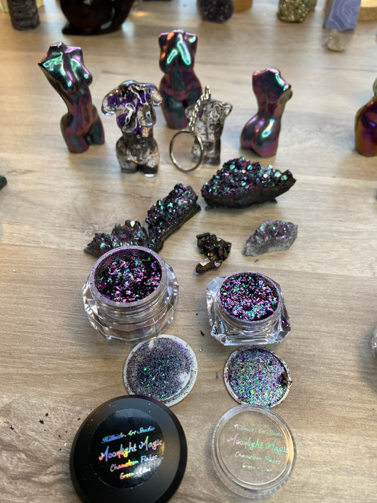 'Moonlight Magic' Chameleon Colour Shifting Flakes. Lilac, gold, green. 0.65g, 0.4g, 0.1g. Skin Safe, Resin Art, Nail Art