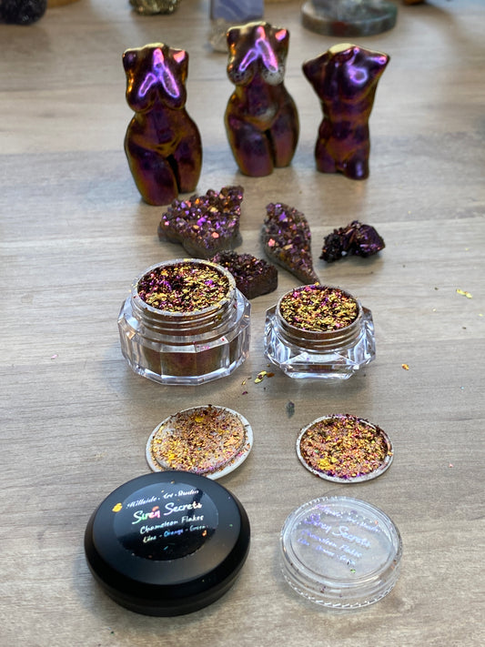 'Siren Secrets' Chameleon Colour Shifting Flakes. Lilac - gold - green. 0.65g, 0.4g, 0.1g. Skin Safe, Resin Art, Nail Art