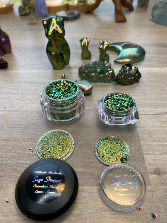 'Sage Shimmer' Chameleon Colour Shifting Flakes. Lilac - gold - green. 0.65g, 0.4g, 0.1g. Skin Safe, Resin Art, Nail Art