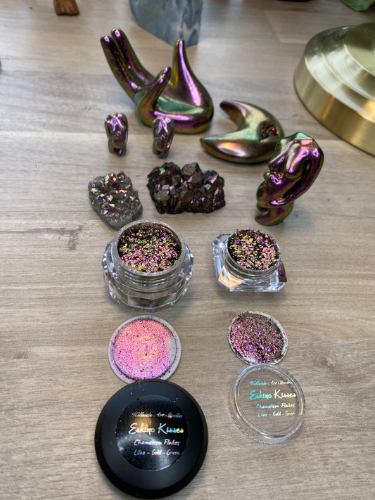 'Eskimo Kisses' Chameleon Colour Shifting Flakes. Lilac - gold - green. 0.1 g, 0.4 g or 0.65 g. Resin Art Supplies, Nail Art