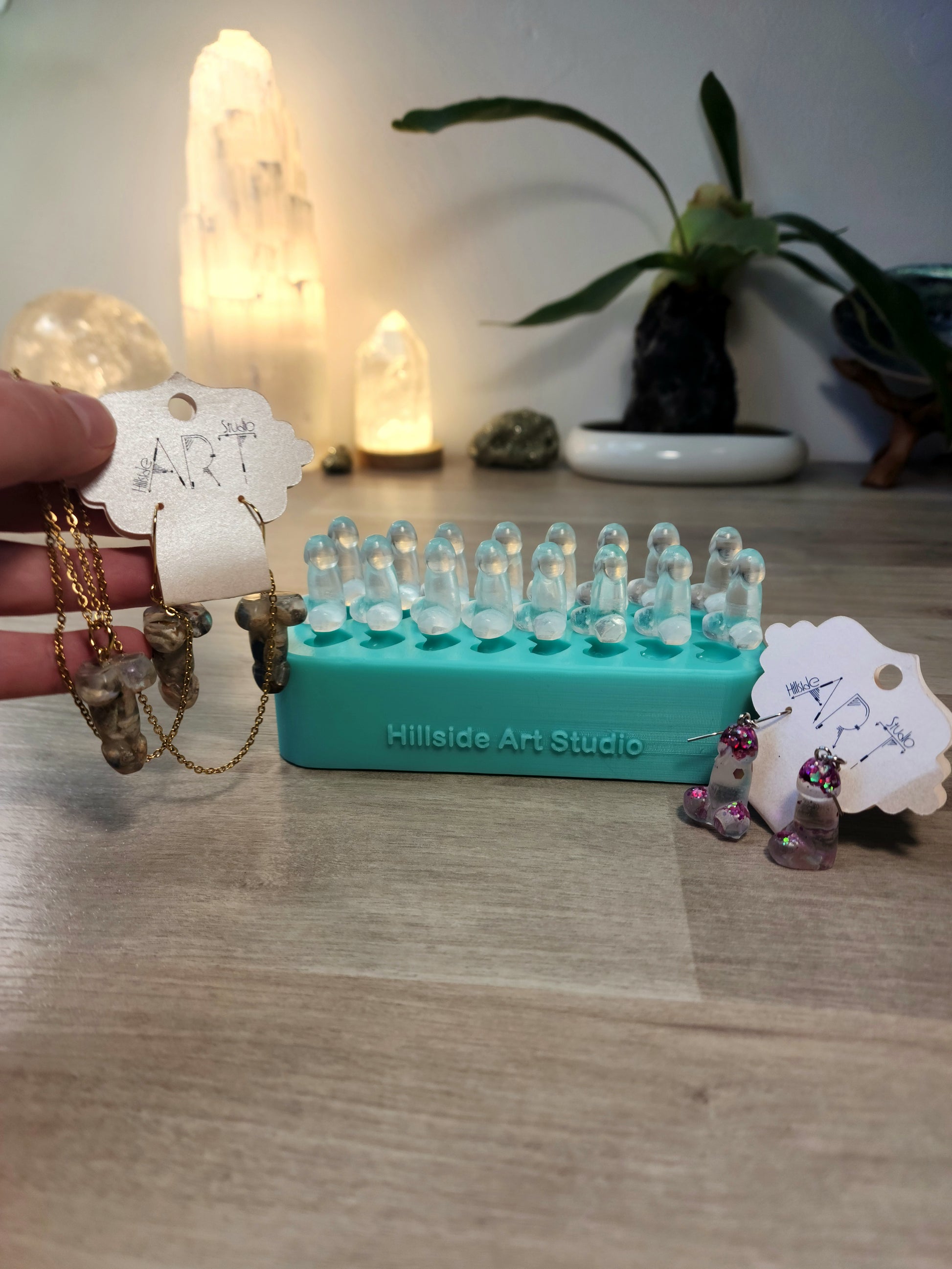 Mini penis palette silicone mould. Make 16 or 2 at once. Food grade silicone option for Ice Cubes, Chocolate, Gummies. Or make your own pair of resin earrings, wax melts, cheeky magnets. Great for hens nights, bachelorette parties, gifts.
