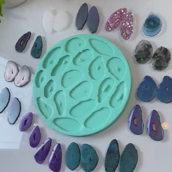 XL Agate Crystal Palette Silicone Mould. 9 Matching pairs. 18 total individual pieces. Make resin earrings, pendants, magnets key-chains